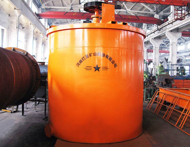 攪拌桶由電動(dòng)機(jī)、葉輪、定子、軸承等部件組成,采用平底桶形輻射循環(huán)螺旋葉輪機(jī)械攪拌式方法進(jìn)行攪拌作業(yè)。攪拌槽工作時(shí)電動(dòng)機(jī)牽引三角帶傳動(dòng)裝置帶動(dòng)葉輪旋轉(zhuǎn),礦漿和藥劑在葉輪的勻速攪拌作用下實(shí)現(xiàn)充分的相互混合,增加藥劑對(duì)礦漿的反應(yīng)時(shí)間,對(duì)藥物的反應(yīng)質(zhì)量進(jìn)行強(qiáng)化,從而使物料得到充分的攪拌和混合,為下一階段的浮選機(jī)生產(chǎn)做好必要的準(zhǔn)備條件。