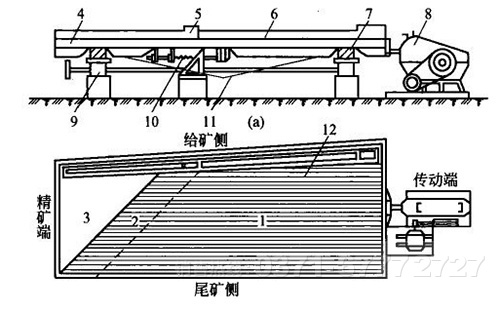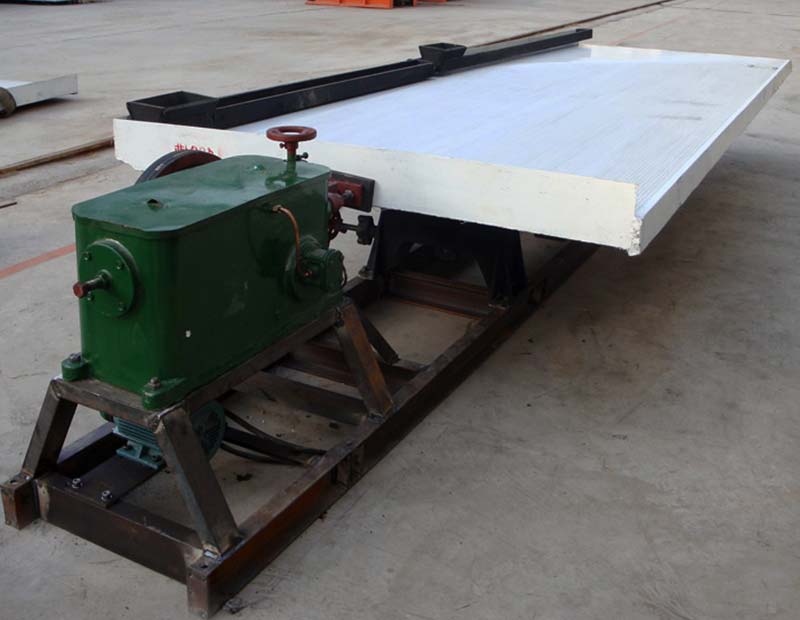 搖床選礦是在一個傾斜的床面上借助機械石板對稱往復運動和薄層斜面水流等聯(lián)合作用,使礦粒在床面上松散分層,分帶,從而使礦物按密度不同來進行分選的過程。