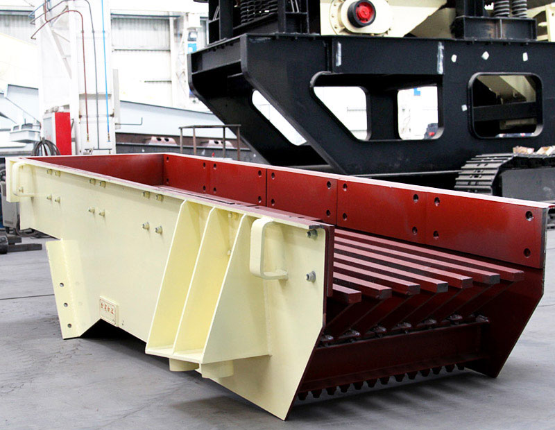 振動(dòng)給料機(jī)是一種可以把塊狀、顆粒狀的物料從儲(chǔ)料倉中均勻、定量、連續(xù)送入受料裝置的一種設(shè)備。振動(dòng)給料機(jī)在砂石生產(chǎn)線中可以為破碎機(jī)連續(xù)均勻的喂料,并對(duì)物料進(jìn)行粗篩分,具有結(jié)構(gòu)簡(jiǎn)單,操作、潤滑方便,耗電量小的特點(diǎn),可以均勻地調(diào)節(jié)給礦量,現(xiàn)如今在礦山行業(yè)已得到廣泛應(yīng)用。