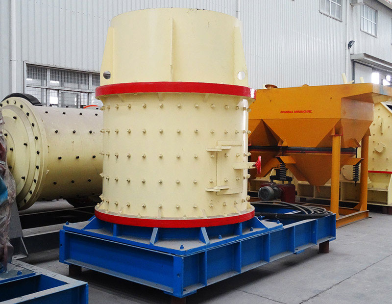 塊狀礦石由進(jìn)料斗落入上破碎腔內(nèi)上甩料盤上,借助甩料盤的離心力將物料拋向筒體的內(nèi)壁,與安裝在內(nèi)壁上的反擊板猛烈碰撞,同時(shí)物料互相撞擊,使之破碎或產(chǎn)生大量發(fā)絲裂紋,接著物料進(jìn)入錐形轉(zhuǎn)子腔后,在錐形空間呈螺旋狀下落,經(jīng)沖壓、擠壓,使已有裂紋的礦石進(jìn)一步被破碎。由于錐形轉(zhuǎn)子與襯板間的斜度,促使較小的物料向下遷移,達(dá)到由大到小自動(dòng)實(shí)現(xiàn)分級(jí)破碎。物料在錐形轉(zhuǎn)子腔內(nèi)受錘頭的打擊,高速運(yùn)行塊料再次與反擊板碰撞、物料流相互碰撞使物料經(jīng)打擊、撞擊、剪切、擠壓面粉碎,從而提高破碎效率。