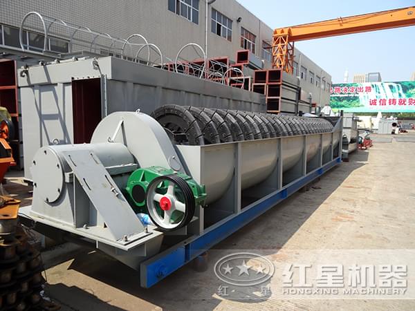 借助固體顆粒的比重不同而在液體中沉淀的速度不同的原理,利用螺旋分級機對礦石混合物進行洗凈和分級;